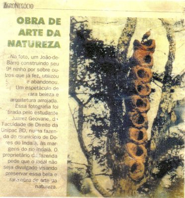 Na foto, um João-de-Barro construindo seu 9º ninho por sobre outros que já fez, utilizou[...]
